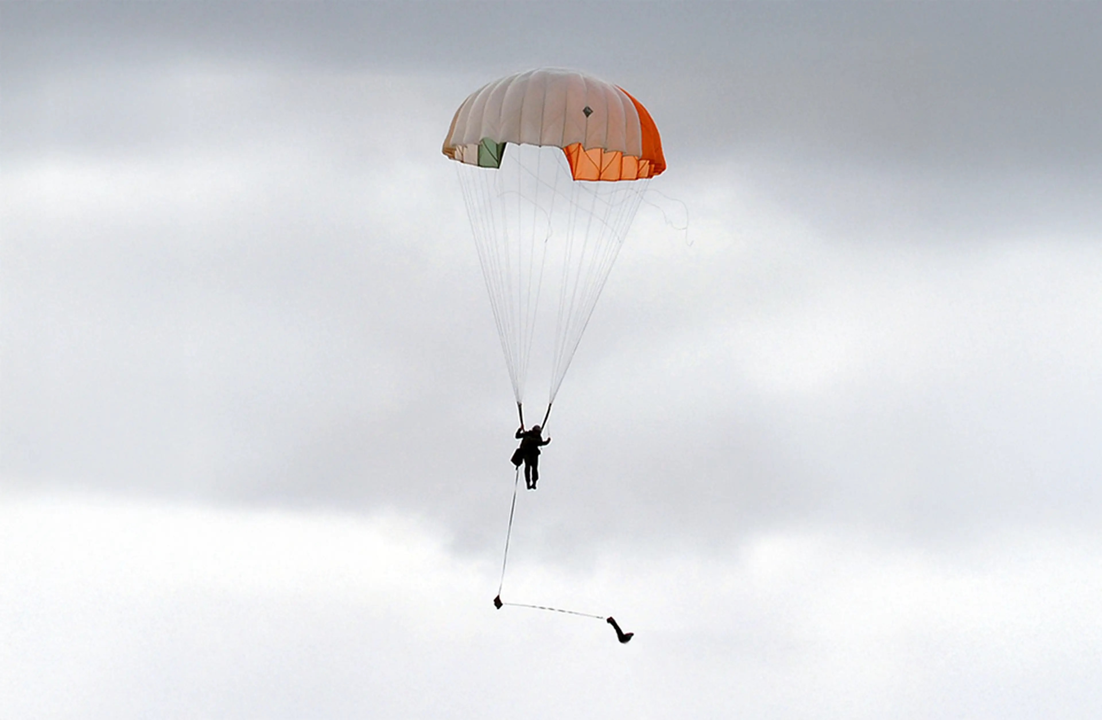 ইজেকশনের পর প্যারাশুটের সাহায্যে নেমে আসছেন একজন পাইলট। ছবি: সংগৃহীত