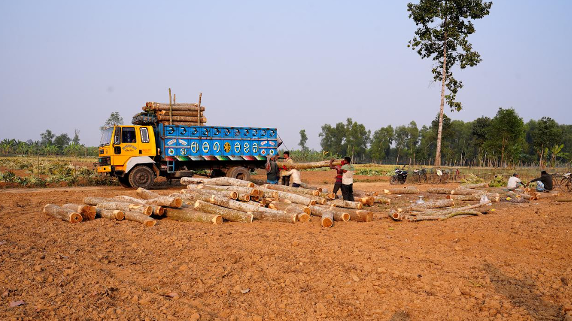 একই দিন তিলেরতালের আরেকটি জায়গা দেখলাম—তৃতীয় আবর্ত শেষে বিস্তীর্ণ এলাকা থেকে আকাশিয়া গাছ কাটা হয়েছে। এসব গাছের সর্বশেষ গুঁড়ি ট্রাকে তোলা হচ্ছিল। বিশাল এলাকাটির এক কোণে হলুদ ফুলে ভরা সরিষা গাছ, আর কিছু অংশে সদ্য আনারসের চারা রোপণ করা হয়েছে।