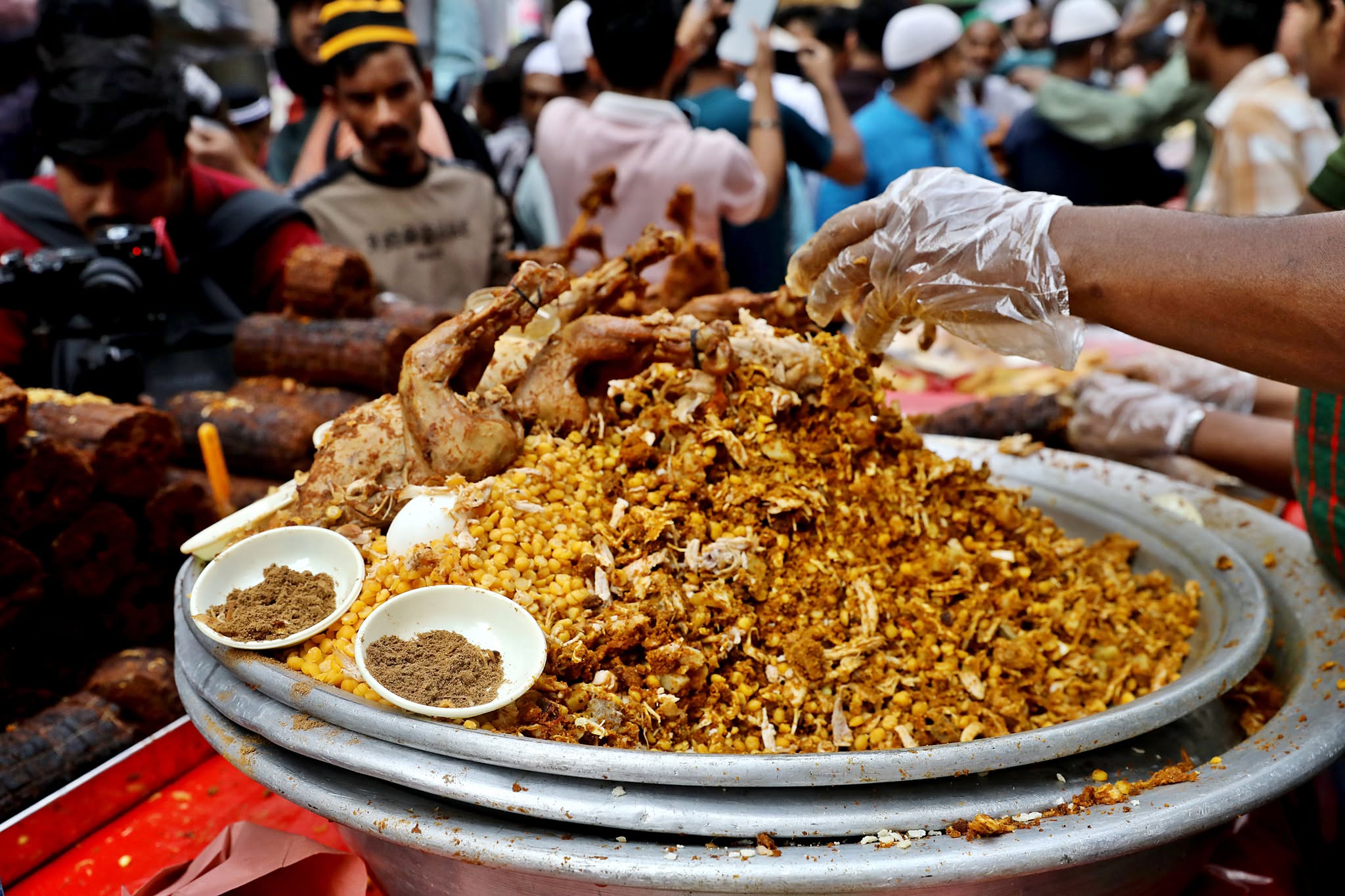 জোহরের নামাজের পর থেকেই বিক্রেতারা পসরা সাজাতে শুরু করেন। কেউ কাবাবের শিকে মাংস গেঁথে আগুনে দিচ্ছেন, কেউ বড় ট্রেতে সাজাচ্ছেন সোনালি জিলাপি, আবার কেউ কাচের জারে ঢালছেন কাশ্মীরি ও ইরানি শরবত। দূর থেকে আসা ক্রেতাদের পদচারণায় অচিরেই মুখর হয়ে ওঠে পুরো এলাকা।